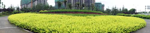 據高經理介紹,該工程是壽光市2009年的一項重點市政工程,本著綠色、生態、自然的原則,在保留部分大樹的基礎上,對道路景觀進行了全新改造。工程由北至南,依次設置下沉廣場、北廣場、南廣場、方形廣場等多個景觀節點,每個節點的植物配置、地面鋪裝等都各不相同,形成一個個獨具特色的小場景;同時,又通過錯落有致的植物搭配、蜿蜒曲折的游憩步道,將整個工程貫穿起來,使得整體的景觀效果統一中富于變化,開闊中層次分明。