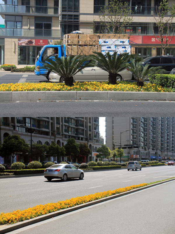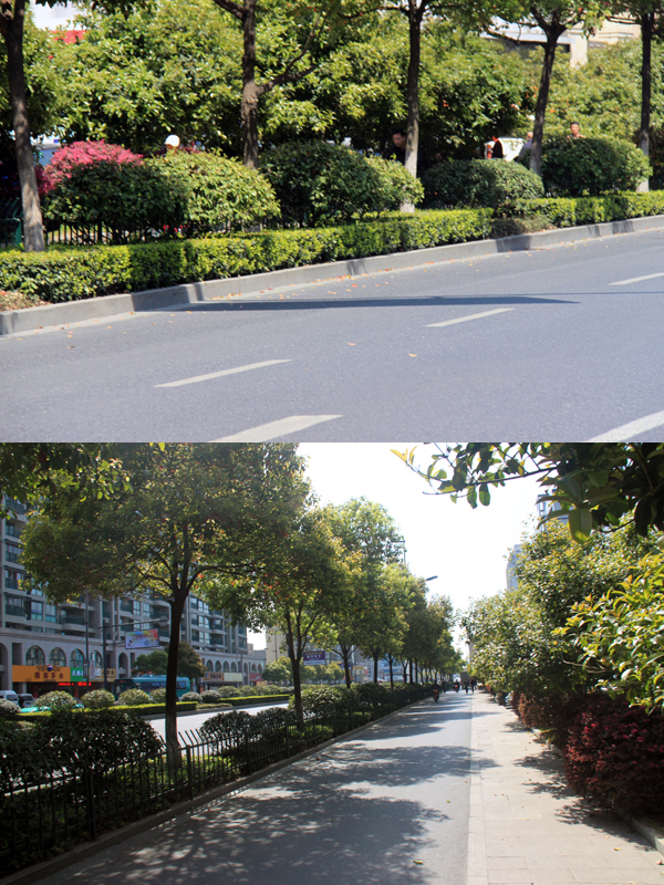 鳳起東路上秋濤路至新塘路的這段綠化,正是由公司施工的。春日明媚的陽光下,這段道路中間的隔離帶里,修剪得整齊一致的灌木,一眼望去,綠色滿目,特別是鵝黃色的嫩葉,有著不同于老葉的青翠,昭示著生機無限,使司機在行車的途中視野清晰、開闊通透;道路兩側(cè)的隔離帶里,枝葉細密的香樟擋住了直射下來的陽光,灑下滿地綠蔭,為行人撐起了一道清涼的“綠傘”;十字路口的小花壇里,黃色、紫色的三色瑾燦爛地盛開,為等待紅燈的行人和司機帶來春天的氣息。整條道路的綠化看起來清新養(yǎng)眼,不管是開車行駛的司機還是慢步而行的路人,都能感受到閑適和愜意。