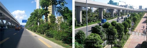 如今,開車行進(jìn)在這條道路上,干凈整潔的路面、開闊通透的視野、清新自然的景觀,給人帶來閑適、愜意的感覺。“以人為本,尊重自然”的綠化理念,體現(xiàn)在景觀中的每個(gè)細(xì)節(jié);自然環(huán)境與城市環(huán)境的密切結(jié)合,使高架橋的道路通行功能與橋下中央綠化帶的生態(tài)功能有機(jī)融合。整條道路,不僅體顯出深圳這個(gè)濱海大都市獨(dú)有的景觀特色,更彰顯出這個(gè)城市的生機(jī)活力與熱情奔放。