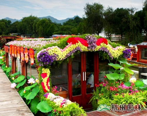 藝術節期間,首次在西湖湖面上配置6艘荷花花船,極大地提高了荷花節的觀賞性和趣味性,成為西湖中一道流動的荷花美景。其中,由杭州市園林綠化股份有限公司設計制作的“魅力西湖”荷花游船,將插花技藝與園林布景手法有機結合,用康乃馨、勿忘我、太陽花等與荷花組景,既突顯了“主角”荷花的秀麗、典雅,又使整艘船的色彩明艷豐富,將熱鬧的節日氛圍巧妙烘托。