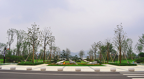 工程在施工過程中,對(duì)原有地形和保留下來的大量古樹、名貴樹木進(jìn)行了充分運(yùn)用。本著以人為本、生態(tài)優(yōu)先的原則,因地制宜、因材施用,建成了許多不同風(fēng)格的景點(diǎn),營造出全新的景觀效果。
