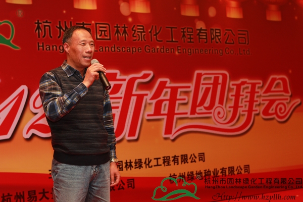 表彰儀式結束后,董事長吳光洪發表了新年致詞。吳董首先對各位領導和嘉賓的到來表示了熱烈歡迎;然后與大家共同回望了企業2011年所取得的成就,并對2012年的發展進行了規劃和展望,他感謝大家對杭州園林一路的支持與關注,希望未來仍能與大家一起攜手前行;最后,吳董舉起手中的酒杯,與大家一起為新的一年干杯,并宣布晚宴正式開始。