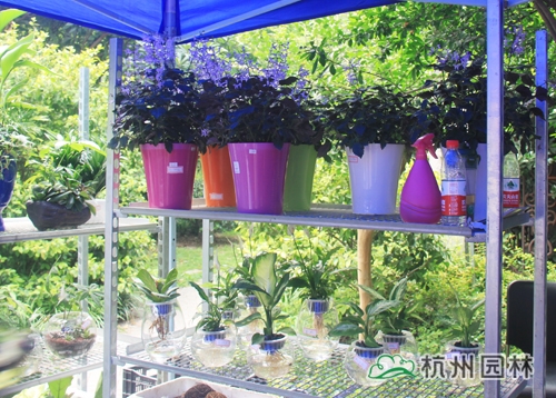 杭州市園林綠化股份有限公司旗下的畫境?青山湖花園中心應邀參加了本次活動,現場展示了很多適合家庭養殖的園藝產品,小巧可愛的多肉植物組盆、清新干凈的水培白掌、花朵碩大的藍色八仙花、花朵宛如一只只蝶兒蹁躚枝頭的吸毒草等,吸引了不少居民關注的目光。花園中心園藝師王元元耐心回答了大家提出的各種養花問題,并發出邀請,希望大家有機會去臨安青山湖現場體驗更多精彩園藝瞬間。