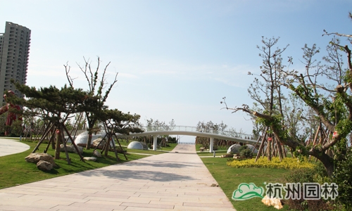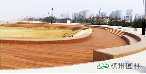 煙臺開發(fā)區(qū)濱海廣場項目位于開發(fā)區(qū)海濱路以北、峨眉山路與昆侖路之間,施工面積約10萬平方米,施工內(nèi)容主要包括綠化種植、硬質(zhì)鋪裝、園林建筑、水電安裝等,施工內(nèi)容多,工藝要求高,工程量大,是一個大型綜合性園林工程項目,由杭州市園林綠化股份有限公司承建。