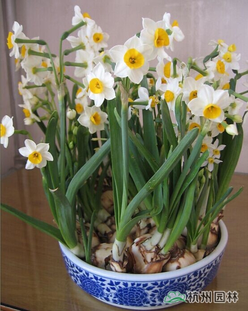 水仙:水仙是冬季常見的花卉之一,通常種植的水仙是指中國(guó)水仙,其姿態(tài)玲瓏可人,清香撲鼻,在寒冬臘月可開花;而洋水仙一般在春季開花,色彩艷麗,形態(tài)壯美,但大多缺乏香味,兩者各具特色。但是,無論中國(guó)水仙還是洋水仙,種球的優(yōu)劣決定著花的質(zhì)量,因此,在選購(gòu)種球時(shí)要挑個(gè)大、硬實(shí)、側(cè)芽少的種球。中國(guó)水仙有土培和水培兩種種植方法,水培法即將催芽處理后的水仙種球直立放入淺盆中,加水淹沒鱗莖三分之一為宜,盆中以玻璃球、鵝卵石等固定。洋水仙不宜用作水培且喜冷涼環(huán)境,過于溫暖會(huì)導(dǎo)致葉片徒長(zhǎng),較喜水,花期時(shí)適量增加水分可延長(zhǎng)花期。