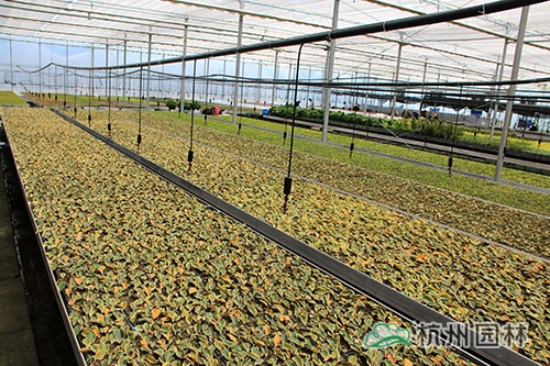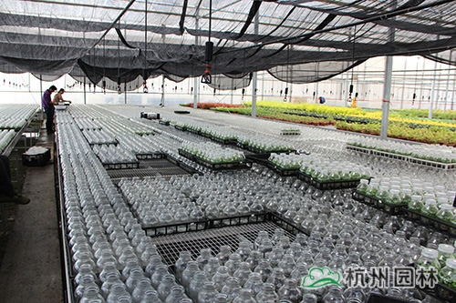 杭州畫境種業(yè)有限公司徑山基地基礎(chǔ)建設(shè)已于2014年基本完工,包括蔭棚地塊建設(shè)、基質(zhì)攪拌、辦公室、倉庫等,其中,新建的溫室大棚已全面投入使用,由公司自行組培的16萬棵火焰南天竹也進(jìn)入了煉苗階段,畫境種業(yè)的員工和工人們一起,通力合作,爭取以最高的效率完成煉苗工作,總經(jīng)理黃民強(qiáng)也親臨現(xiàn)場,給大家指導(dǎo)與支持。在領(lǐng)導(dǎo)的關(guān)心下,大家信心倍增,計劃在一周內(nèi)完成全部煉苗工作。火焰南天竹,是公司組培研發(fā)生產(chǎn)的新品種,它植株低矮,枝葉密集;幼葉及冬季葉亮紅色至紫紅色,初秋葉變紅色,比南天竹紅色葉深,變色期早;喜溫暖濕潤、通風(fēng)良好的半陰環(huán)境,較耐寒,生長較快,在園林景觀中的應(yīng)用比較廣泛。