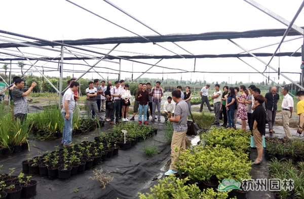 下午,杭州市園林綠化股份有限公司研發(fā)中心技術(shù)員劉華紅帶領(lǐng)大家來到畫境?徑山生產(chǎn)中心進行實地參觀。結(jié)合研發(fā)中心開展的一個除草劑試驗,劉華紅向大家介紹了試驗的設(shè)計思路、處理設(shè)置,展示了拔綠(Barricade)、莠去津(Atrazine)等4種除草劑不同濃度處理的除草效果,初步指出正常用量的拔綠對多種庭院植物容器苗的除草效果較好。