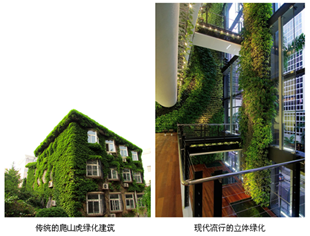 立體綠化的主要形式為立體綠化墻,也稱植物墻或綠墻,是近年來興起于法國的一項用于墻面垂直綠化的新技術(shù)。過去用于垂直綠化的植物只有大家熟悉的爬山虎、紫藤等,但是這些植物缺乏常綠、觀花、觀果的觀賞效應,而且還要引導植物攀爬墻面,搭棚架、立柱,幾年以后才成氣候,比較麻煩。而如今的立體綠化墻是一個小型生態(tài)系統(tǒng),它可以根據(jù)客戶需要,結(jié)合氣候、溫度、濕度、色彩等綜合條件,選配四季長綠或色彩豐富的植物,隨時在人們想要的地方構(gòu)建出一個貼近自然又超脫自然的生活環(huán)境。當在屋頂、墻面等覆蓋了適當?shù)闹脖缓螅罅康臒釟夂妥贤饩€都會被植物抵擋,這層植物墻能夠使其表層溫度降低15°C左右,夏天基本可以不需要依賴空調(diào)。而且植物墻能消除墻面對陽光的反射,使走在大街上的人們不受陽光干擾,感受到?jīng)鏊耐瑫r也避免眼睛被強光照射。到了冬天,植物墻又具有保溫的功能,這種方式非常低碳節(jié)能,并且更健康。