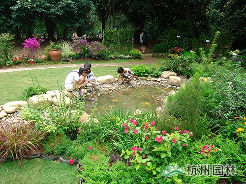 走進園內,蜿蜒的溪流和溪岸邊的景致野趣妙生,一下子撲入視野,清澈的溪水、光滑的卵石、可愛的小蝌蚪,與岸邊的銀邊菖蒲、水生鳶尾、花葉美人蕉、花葉蘆竹等水生植物一起,營造出生態、自然的河流景觀?!斑@條溪流,其實是我們杭州的母親河——錢塘江的縮影,通過這條溪流的營造,我們想呼吁更多的人保護生態、愛護環境,讓我們的母親河永遠干凈、清澈?!惫绾喍痰脑捳Z中,透露出的是一名園林人渴望更多人關注水生態環境的殷殷期盼。