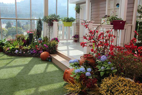 一般陽(yáng)臺(tái)、露臺(tái)等部位以散射光為主,陽(yáng)光直射時(shí)間相對(duì)較少,且溫度與外界相差不大,故植物在選擇時(shí)應(yīng)具有一定的耐陰性與抗寒性。