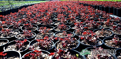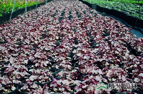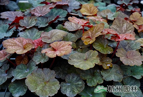 目前長勢較快的礬根、鐵筷子、巖白菜、大黃屬植物等均已陸續展葉、開花。其中礬根喜半蔭,花期4-10月,葉片色彩豐富,有的品種葉背面色彩也相當艷麗,且葉片顏色會隨季節、環境和溫度的變化而變化。礬根多用于林下花境、地被、庭院綠化,是理想的宿根花境材料。目前杭州園林已建立了多個礬根品種的的組培快繁技術體系,為其產業化生產打下堅實的基礎。