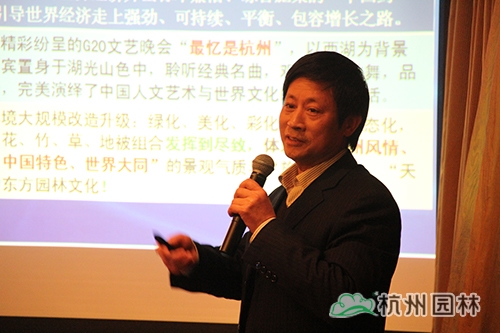 會議特邀嘉賓、杭州園暢商務咨詢有限公司CEO吳世光以《從杭州G20景觀應用看苗木產業供給側改革與市場新格局》為主題,分享了他對于苗木行業現狀及未來發展趨勢的精辟見解,為廣大苗木從業者拓寬了發展思路,增強了面對困難的信心。
