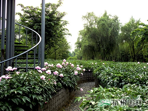 芍藥迷宮,下部采用疏松透氣的介質作為種植筐,為芍藥提供良好的生長環境。