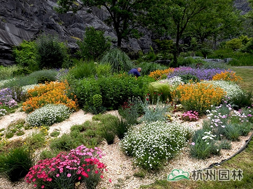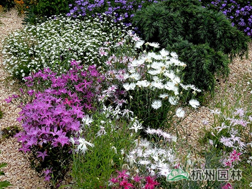 石竹在巖石園中的應用。