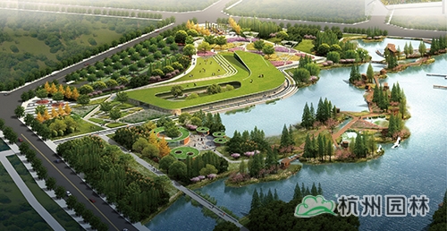 養生休閑主題區:對原有的生產景觀保留改造,水稻田、葡萄園、油菜園、果園、苗圃以及可食用水生植物被布置其中,兼具經濟與觀賞價值,結合水莊、竹庭、有機菜園,酒莊等休閑景點,推廣宣傳現代都市農業。