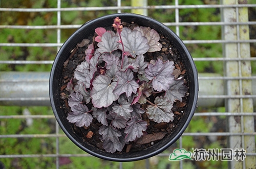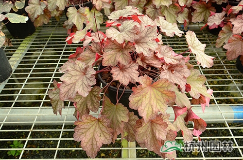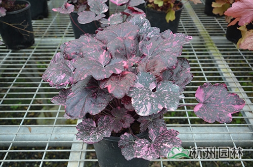 礬根Heuchera micrantha,虎耳草科礬根屬,多年生耐寒草本花卉,原產于美國中部,是少有的彩葉陰生地被植物,被廣泛應用于美國園林景觀中。近年來,在國內,作為新優地被植物,礬根因其美麗的葉色和獨特的葉形,良好的觀賞性和景觀效果,成為熱門園林植物之一,有著廣闊的應用前景。