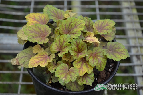 礬根葉形也變化多樣,基部心形或楔形,掌狀淺裂至深裂,邊緣波狀,淺根系,葉基生,花期一般為4~10月,花很小,呈鐘狀,兩邊對稱。幼苗長勢緩慢,成苗后生長旺盛。綠期長,能夠在-15℃以上的溫度下生長。具有喜半蔭、耐全光、耐旱性和耐寒性強等生理特點。適宜富含腐殖質的土壤。喜中性偏酸,適宜的PH值為5.8~6.2,能夠在傾斜地方生長。冬季不落葉,枝葉生長稠密,株型圓整,覆蓋性強,花和葉都比較漂亮。