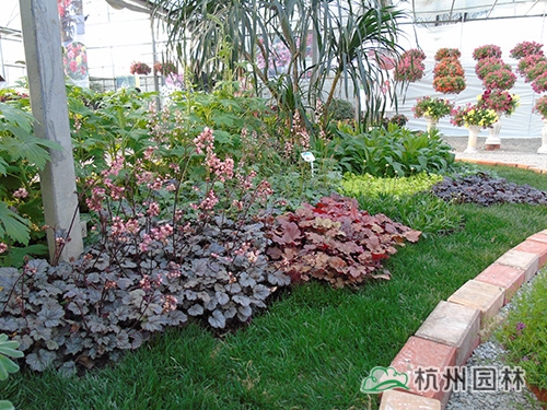 礬根花色各異,植株姿態優雅,色鮮艷、花期長,既可以與其他觀賞植物搭配種植,也可以將不同顏色的礬根品種搭配種植,具有很高的觀賞價值。礬根在園林中多應用于林下花境、地被、庭院綠化、立體造景;也多配置于多年生花壇或者花帶邊緣、巖石園、公路道路兩側等;也可作高架橋立體裝飾;組合盆栽用于陽臺、花園及私家庭院中,也凸顯出其色彩優勢。
