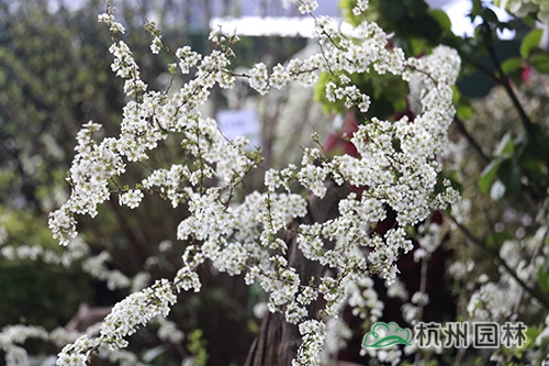 現場景觀表現最為搶眼的,當數噴雪花,長長的枝條上開滿了細密的小白花,花朵和珍珠般的花蕊綴在低垂或是翹起的細長枝條上,就像是噴泉噴涌而出,只不過這噴泉噴的不是水,而是“雪花”,遠遠望去一片雪白,甚是壯觀,好似雪花壓滿枝頭,在燦爛明媚的春光中,愈發顯得冰雪可愛,吸引了許多人的駐足觀看和拍照留影。