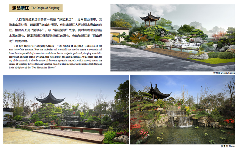 通過一幅幅效果圖與實景圖的對比,不難發(fā)現(xiàn),實景圖與設(shè)計圖并沒有太大區(qū)別,實景圖最大限度表現(xiàn)了設(shè)計思想和精髓,實現(xiàn)了設(shè)計圖紙的完美落地。細(xì)心、用心、創(chuàng)新,深化設(shè)計團(tuán)隊助力浙江園展開了一幅新時代的“富春山居圖”,在2019北京世園會上綻放出奪目光彩。這,就是浙江園的深化設(shè)計團(tuán)隊;這,就是杭園股份的設(shè)計力量。