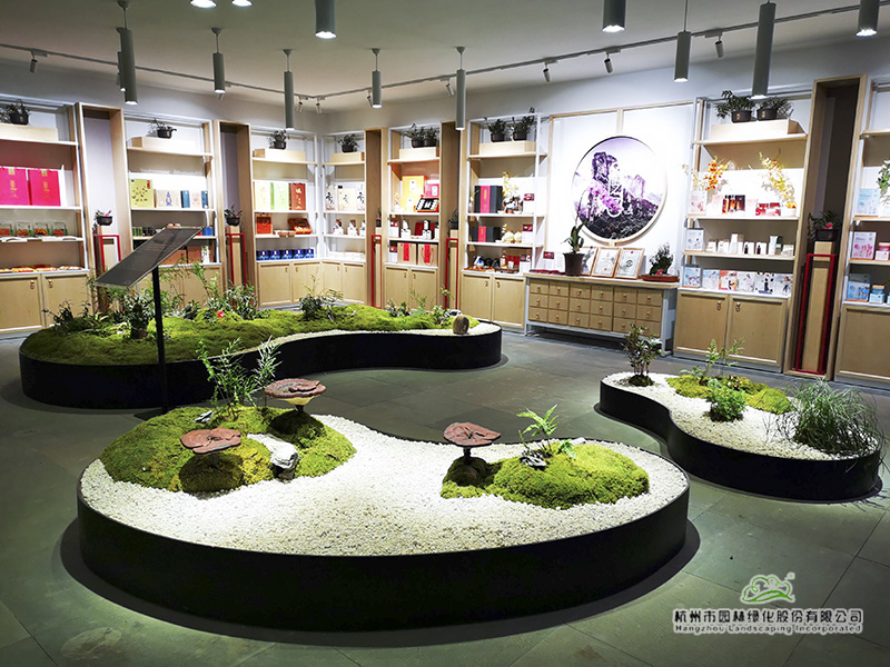 深化設(shè)計充分利用原始現(xiàn)場3米高差形成錯層主體建筑,從入口進(jìn)入庭院觀建筑是一層,背面觀是兩層,負(fù)一層形成半地下室空間,形成了前庭后院的浙江美麗農(nóng)家院落。一層展廳由茶藝展示區(qū)、會客區(qū)、書房等組成,品茶、書法、閑談、小憩,展示愜意富美的浙江生活;負(fù)一層展廳則以產(chǎn)品陳列為主,主要展示浙江省前沿的室內(nèi)園藝品種,宣傳浙江最新的栽培技術(shù)與深加工產(chǎn)品等,讓園藝、生活有機(jī)融合。
