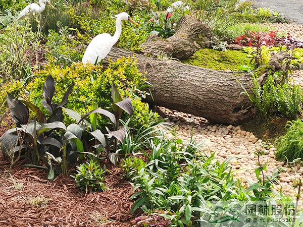 “澤·頌”花境景觀選取了濕地中三種類型,分別以木本花境、觀賞草混搭宿根植物、枯木苔蘚三種植物景觀模式,模擬自然濕地的灌叢、草甸、蘚類三種不同類別濕地景觀,通過豐富的花境植物材料及水鳥造型、枯木等的應用,表現(xiàn)近幾年來建設(shè)新時代美麗杭州、打造“濕地水城”、提升生態(tài)人文景觀建設(shè)過程中取得的成果。