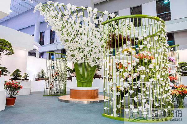 館內用大量的白色蝴蝶蘭花朵和仿竹構筑物打造的立體景觀,在展示浙江竹產業發展的同時,更展現了“綠水青山就是金山銀山”理念在浙江的生動實踐。