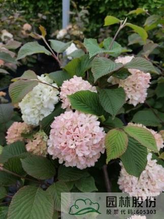 忍冬科莢蒾屬,落葉灌木,國內(nèi)從日本引進(jìn),株高可達(dá)2.5-3m。新葉成暗紅色,后期會(huì)慢慢褪去,呈綠色。整個(gè)花序都是不育花,球形,花苞粉綠色,開放后淡粉色,最后變成白色。花期4月初到5月初。秋天的樹葉顏色多變,像油畫調(diào)色板一樣絢麗多彩。它適應(yīng)我國大部份地區(qū)種植,病蟲害較少。冬季至早春可修剪。一年施肥3次,早春萌芽前,花后及秋季。適合園藝盆栽或庭院觀賞。