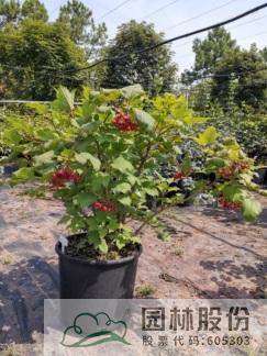 忍冬科莢蒾屬,落葉灌木,高可達(dá)4米。葉掌狀,通常三裂,秋季葉色轉(zhuǎn)紅,特別艷麗。聚傘花序白色,不孕花末期會(huì)呈現(xiàn)粉色,花徑較大,花藥呈黃色,花期4-5月。果實(shí)較大,形似櫻桃,紅艷誘人,給人以強(qiáng)烈視覺沖擊力,能形成園林觀賞的視覺焦點(diǎn)。觀果期長,可達(dá)4個(gè)月之久。適應(yīng)性強(qiáng),通常可自然成形。一年施肥3次,早春萌芽前,花后及秋季。適合工程應(yīng)用與庭院觀賞。