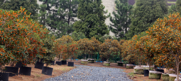 桂花是基地的主導苗木品種,公司依托雄厚的專業(yè)力量和研發(fā)能力,運用現(xiàn)代化的繁育設施和技術,生產(chǎn)各類桂花觀賞盆栽苗、品種容器苗、工程苗、地被容器苗和林木容器苗等,桂花研發(fā)和產(chǎn)業(yè)化程度達到國內(nèi)外領先水平,是“中國桂花品種繁育中心”,承擔著國內(nèi)外專家的桂花課題研究、交流考察、新品種研發(fā)任務;建有中國第一個桂花品種資源庫,收集桂花品種100多個,是國際上收集桂花品種最多最全的種質(zhì)資源庫之一;是國際桂花登錄組織認可的桂花品種國際測試中心;自主研發(fā)了“杭州黃”等4個桂花新品種并通過省級審定,擁有自主知識產(chǎn)權;承擔的科研項目“桂花品種基因(種質(zhì)資源)庫建設與優(yōu)良品種選育推廣”榮獲“2007年度杭州市科技進步一等獎”等,在桂花的科研方面,可謂是碩果累累。