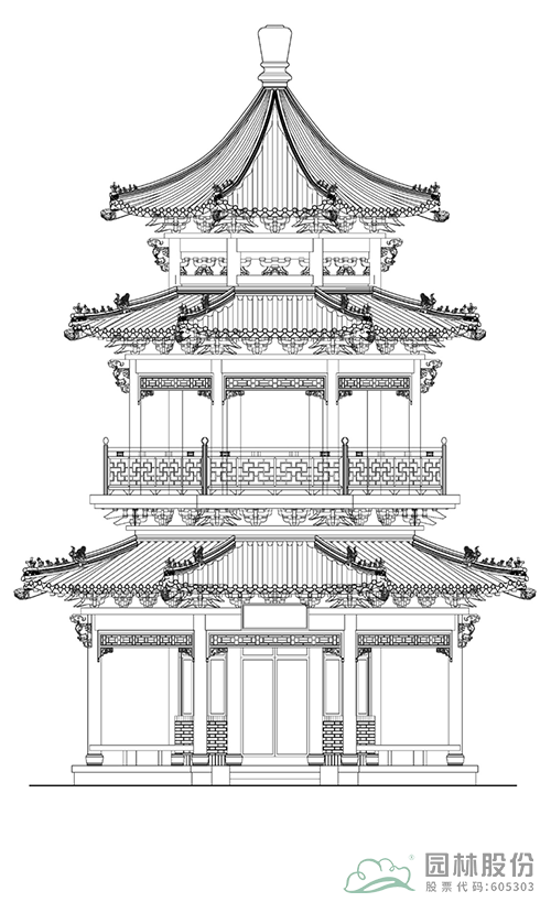 3.尺度比例:依據明清工程做法確定主體構架、屋頂結構、維護結構、臺基地面和裝飾構件五部分的樣式、比例、材料選擇等,使建筑與周圍的景觀相協調。