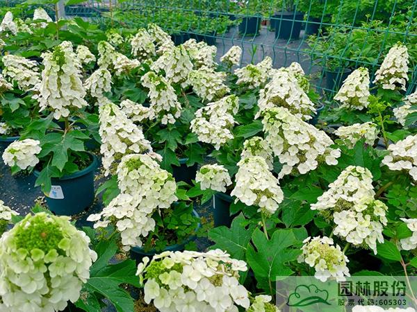 虎耳草科繡球?qū)伲淙~灌木;成株高度100-150 cm,成株冠幅 80-150 cm;葉片掌狀,長寬接近,3~7 裂;花期6-10 月,圓錐花序,花朵密集型,盛花時碩大醒目的花序可達(dá) 30 cm 以上,初期翠綠色,中后期花色逐漸轉(zhuǎn)白,秋季晝夜溫差大會使其逐漸暈染上粉紅色;老枝開花,成年植株花期觀賞效果極佳,花后修剪,平時只需修剪重疊枝、病殘枝即可,以免影響第二年開花;耐熱耐寒,喜溫暖和偏蔭蔽的環(huán)境,微酸性土壤;株型高大,枝條挺拔,樹冠寬闊豐滿,花球碩大;櫟樹一樣的掌狀葉片,到秋季會轉(zhuǎn)變?yōu)樯罴t色,紅葉期一般從每年的深秋至次年的5月,是一種既可觀花、又可賞葉的彩葉灌木。
