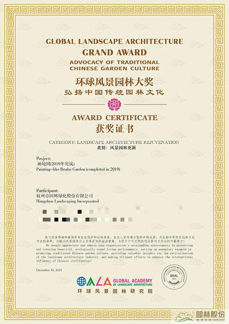 此次兩大項目斬獲國際大獎,是行業對杭州園林股份造園實力、生態理念與文化傳承的高度肯定。多年來,杭州園林股份始終秉持匠心,深耕風景園林領域,在保護生態環境、傳承中國傳統園林文化、打造高品質人居空間的道路上持續探索,以一個個精品項目為城市賦能,為行業發展貢獻智慧。
