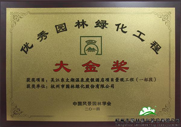 “中國風景園林學會‘優秀園林綠化工程’大金獎”